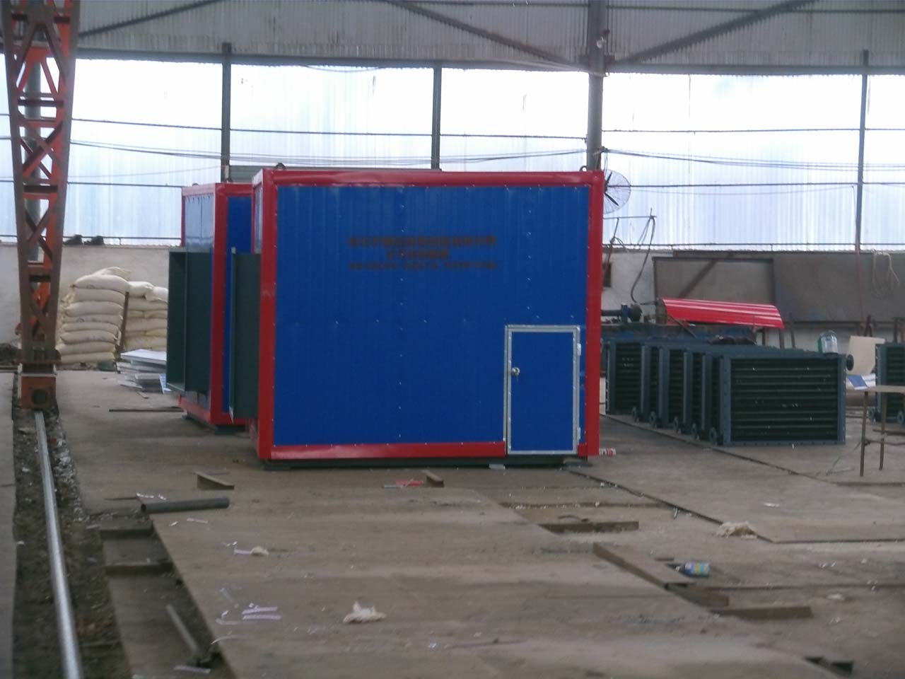 新產(chǎn)品的外形結(jié)構(gòu)是方形的,它的主要傳熱原理是由爐膛產(chǎn)生熱量通過煙道進(jìn)入空氣箱將冷空氣加熱在進(jìn)入烘干設(shè)備或采暖設(shè)備中達(dá)到最終目的。